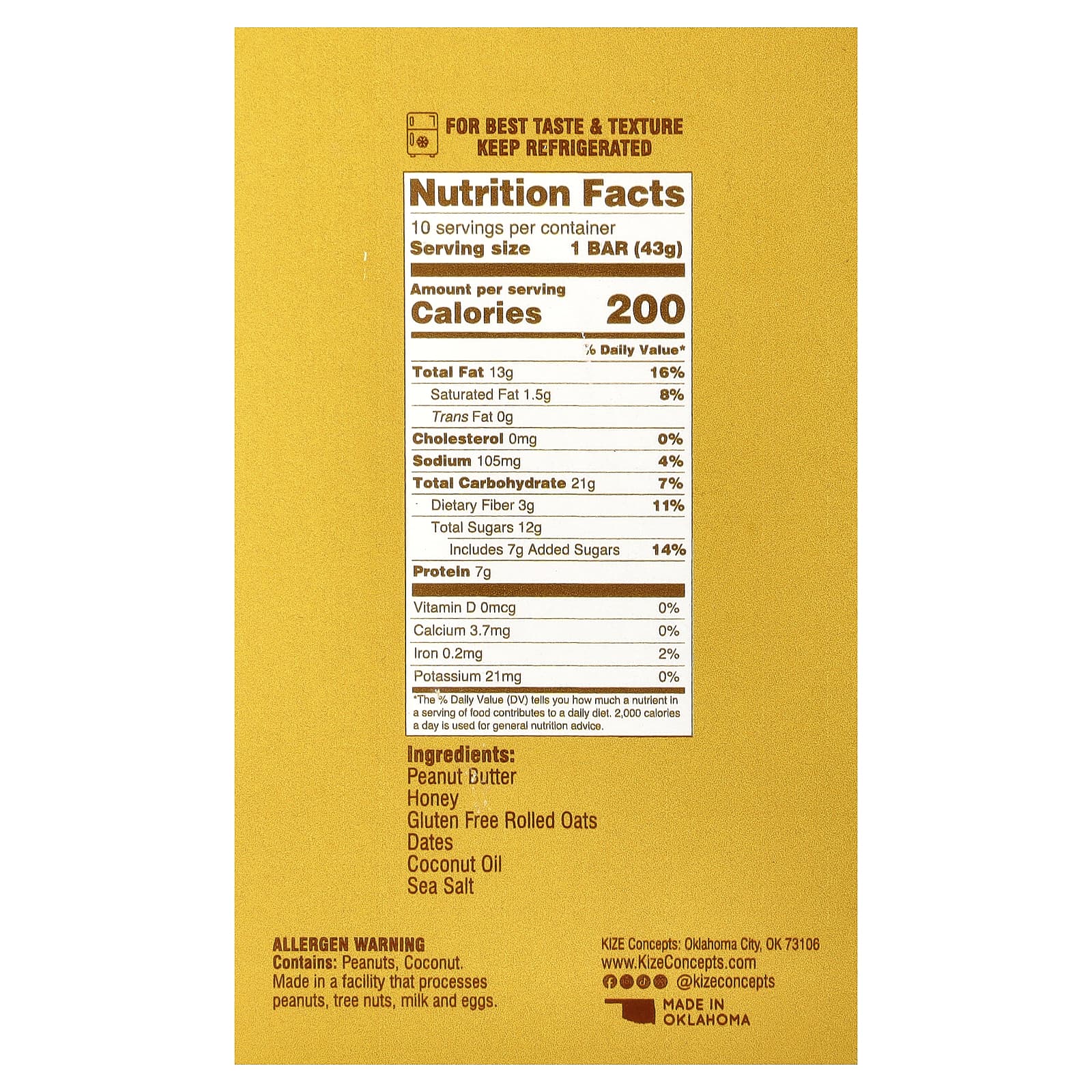 KiZE Life Changing Bar Manteiga de Amendoim Mel 10 Barras 43 g (15 oz) Cada – KiZE Life Changing Bar Alimentos Barras Barrinhas para lanche.