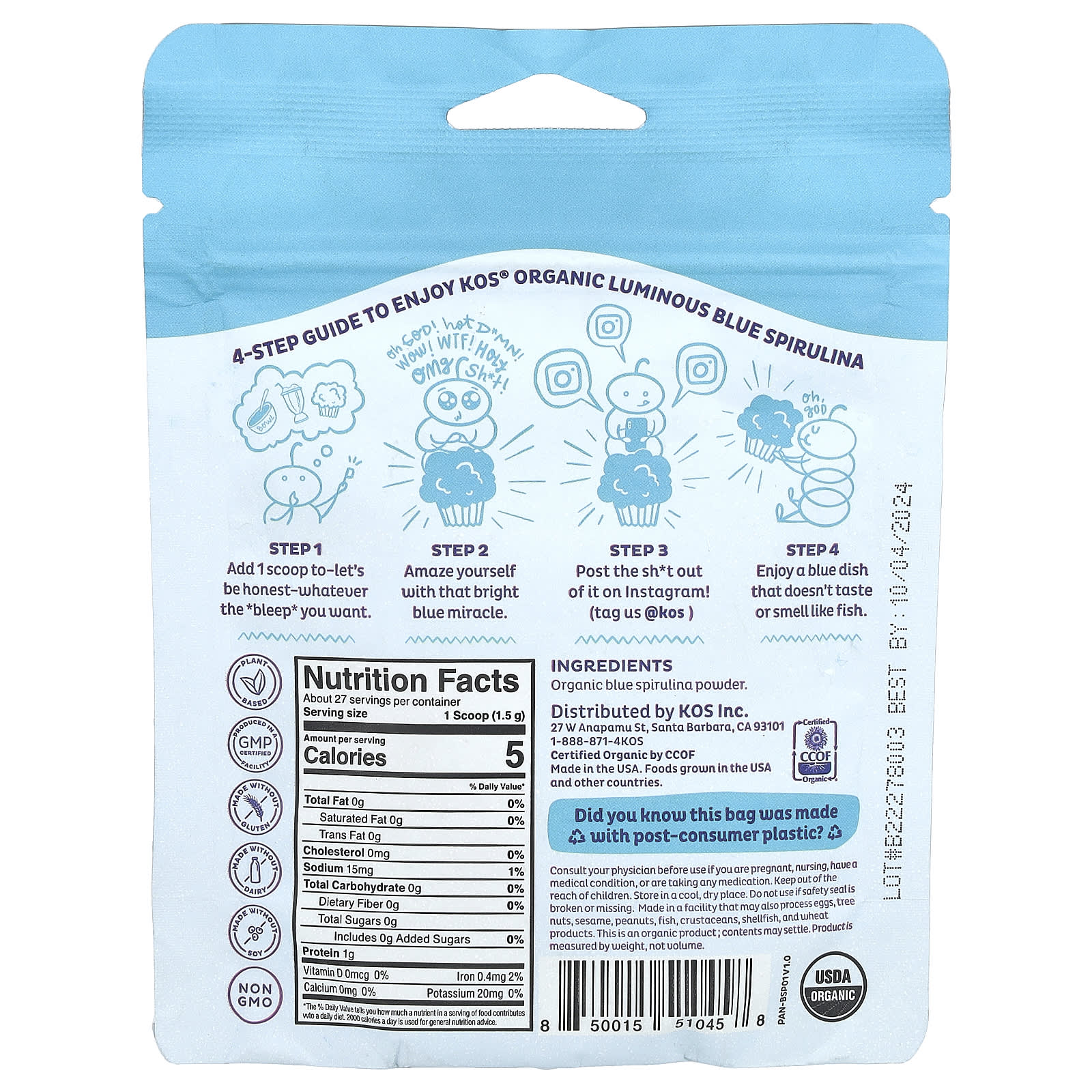 KOS Espirulina Azul Orgânica em Pó 40 g (14 oz) – KOS Suplementos Superalimentos Algas Espirulina.