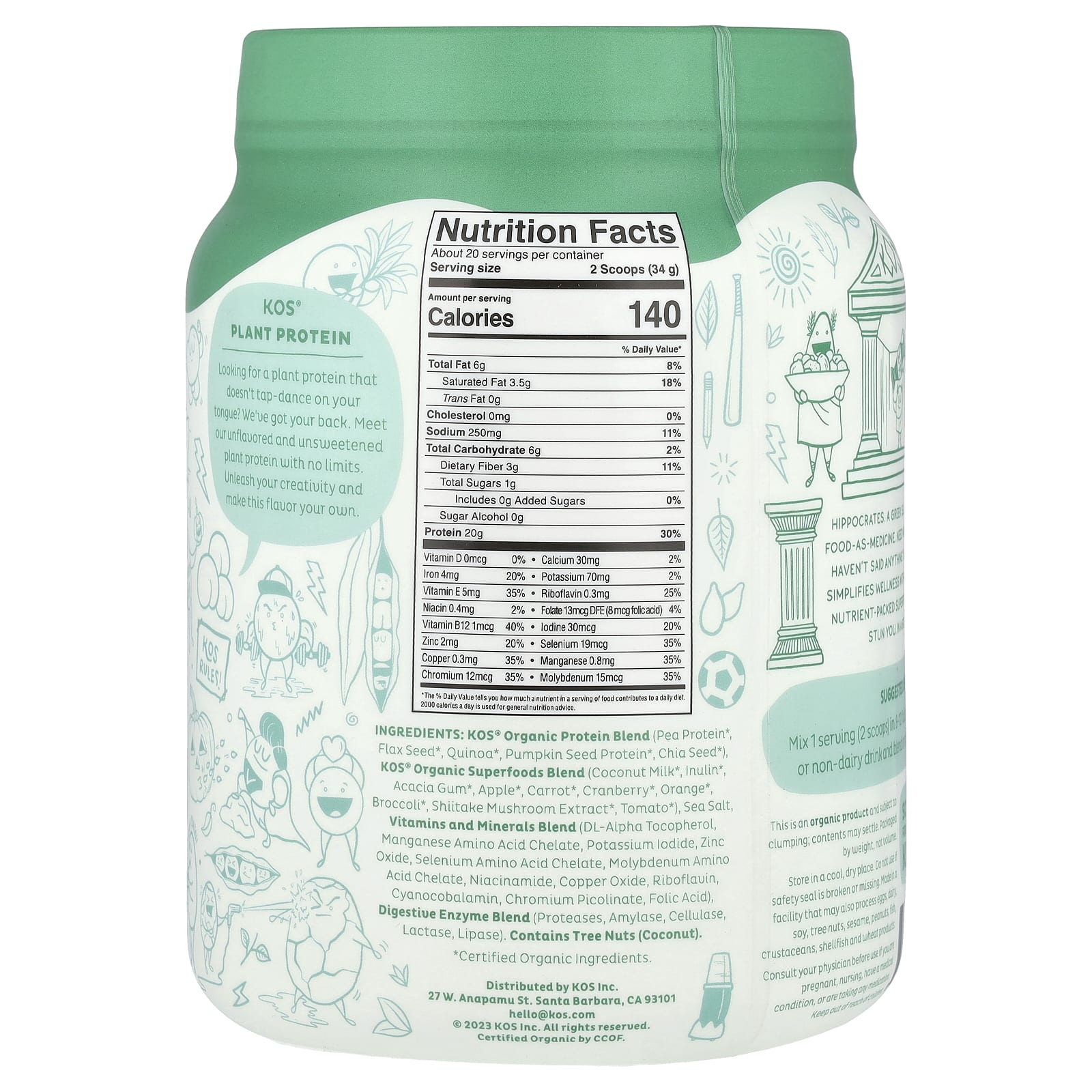 KOS Proteína em Pó de Superalimentos Orgânicos Sem Sabor e Sem Açúcar 680 g (15 lb) – KOS Nutrição Esportiva Proteína Proteína Vegetal Mistura Proteica à Base de Plantas Suplementos Superalimentos Misturas de Verduras e Superalimentos.