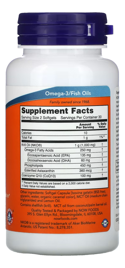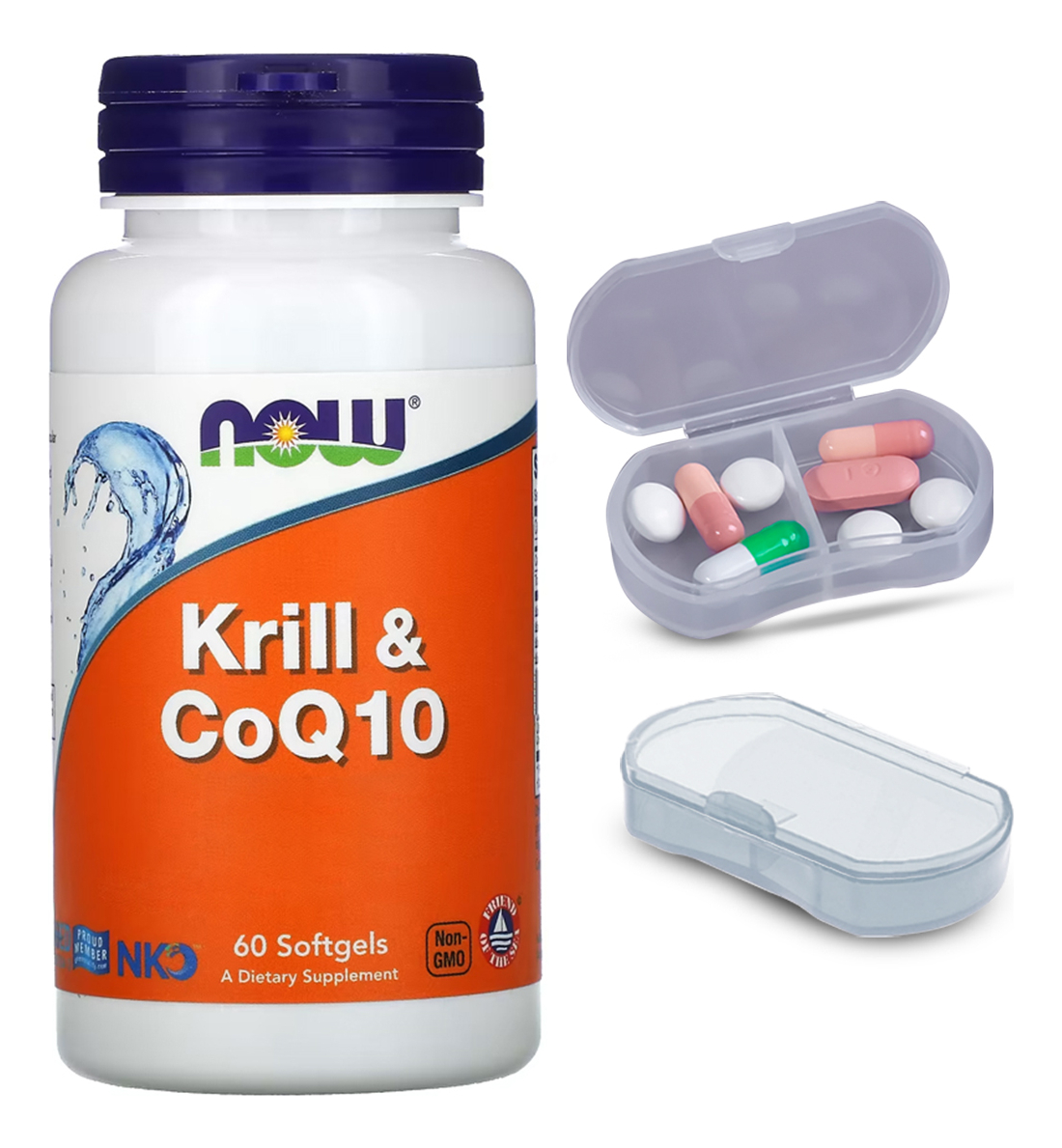 Kit krill e CoQ10 Now Foods 60 Softgels Produto + Porta Cápsulas Combinação Sinérgica para Suporte Nutricional: O Krill & CoQ10 da Now Foods combina os benefícios do óleo de krill com a Coenzima Q10, proporcionando um suporte nutricional sinérgico. Essa combinação é conhecida por suas propriedades únicas, oferecendo um complemento eficaz à sua dieta. Softgels de Fácil Absorção: Formulado em softgels, o produto garante uma absorção mais eficiente dos nutrientes. Os softgels são fáceis de engolir e proporcionam uma maneira conveniente e eficaz de consumir esses nutrientes essenciais. Produto Importado de Alta Qualidade: Este suplemento é importado, assegurando um alto padrão de qualidade internacional. Disponível para entrega imediata, o Krill & CoQ10 chega até você rapidamente, pronto para ser integrado à sua rotina. Porta Cápsulas com Duas Repartições: O kit também inclui um porta-cápsulas prático, dividido em duas seções internas. Isso permite uma organização eficaz e separada de diferentes tipos de cápsulas ou pílulas. Composição de Ingredientes Premium: Cada softgel contém uma mistura de óleo de krill de alta qualidade e CoQ10, sem aditivos desnecessários. Esta formulação é focada em fornecer um produto puro e potente, maximizando seus resultados. VALIDADE LONGA