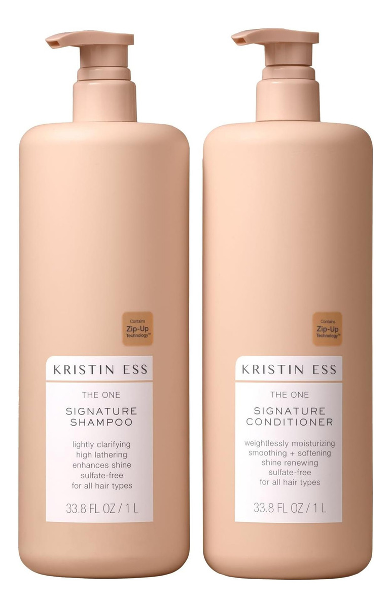 • O pacote Kristin Ess Hair The One Signature vem com um shampoo exclusivo e um condicionador exclusivo para aumentar a hidratação e o brilho.