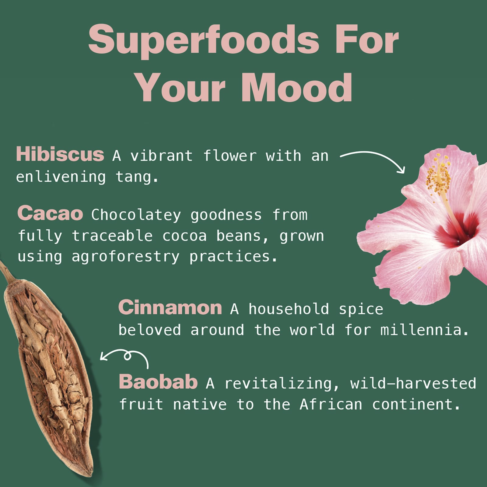 4 Superalimentos: Baobá, Hibisco, Shatavari, Maca-Peruana