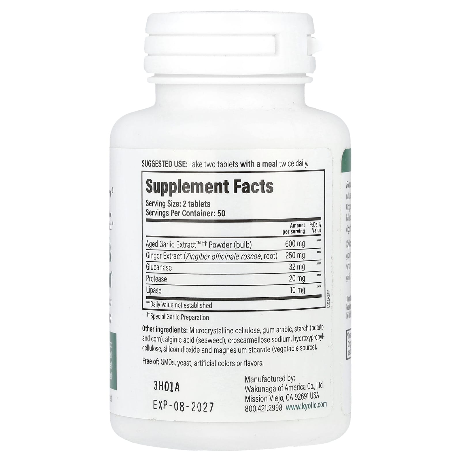 Kyolic Aged Garlic Extract™ Limpeza e Digestão Fórmula 102 100 Comprimidos Vegetais