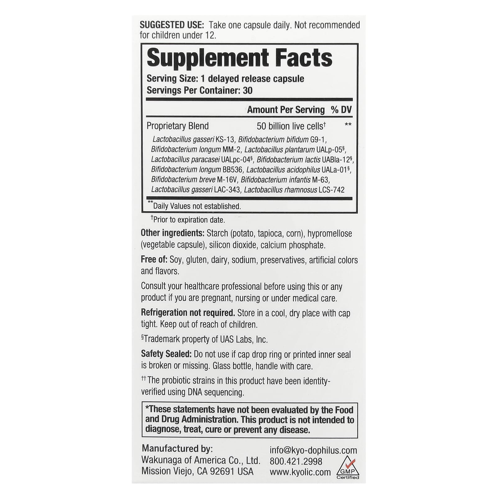 Kyolic Kyo-Dophilus Probiótico Máximo 50 Bilhões de UFCs 30 Cápsulas Vegetarianas – Kyolic Suplementos Saúde Intestinal Probióticos.