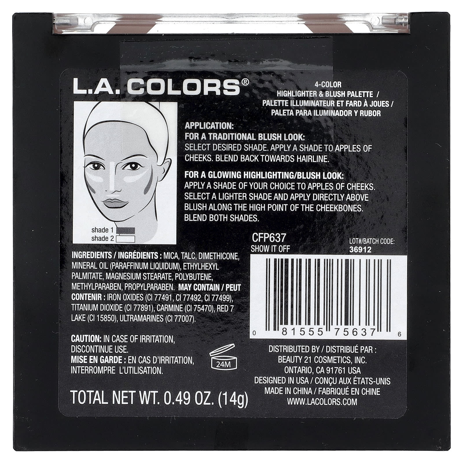 L.A. Colors Paleta de Blush + Iluminador CFP637 Show It Off 14 g (049 oz) – L.A. Colors Beleza Maquiagem Rosto Iluminador Blush.