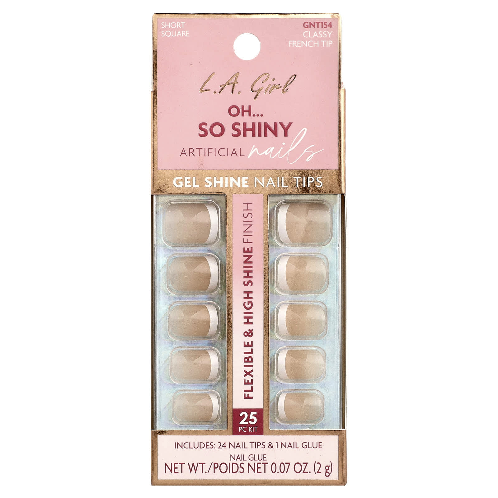 L.A. Girl Oh So Shiny Artificial Nails Dicas de Unhas com Brilho de Gel GNT154 French Tip GNT154 Kit com 25 Unidades – L.A. Girl Beleza Maquiagem Unhas.