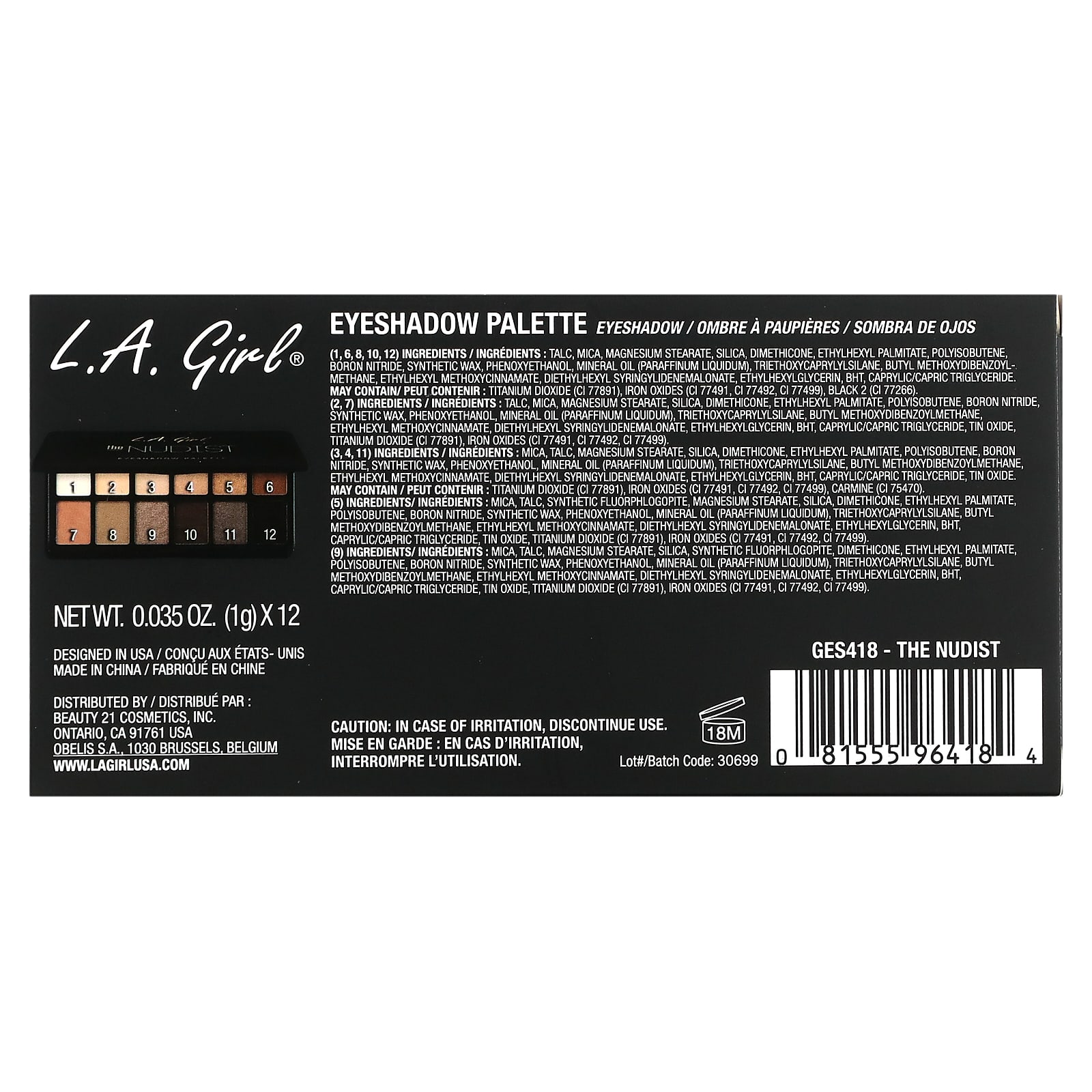 L.A. Girl Paleta de Sombras GES418 The Nudist 12 g (042 oz) – L.A. Girl Beleza Maquiagem Olhos Sombra Presentes relacionados a maquiagem e cuidados com a pele.