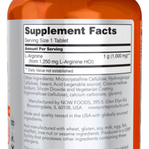 L-Arginina 1000mg Now Foods 60 Tabs Importado