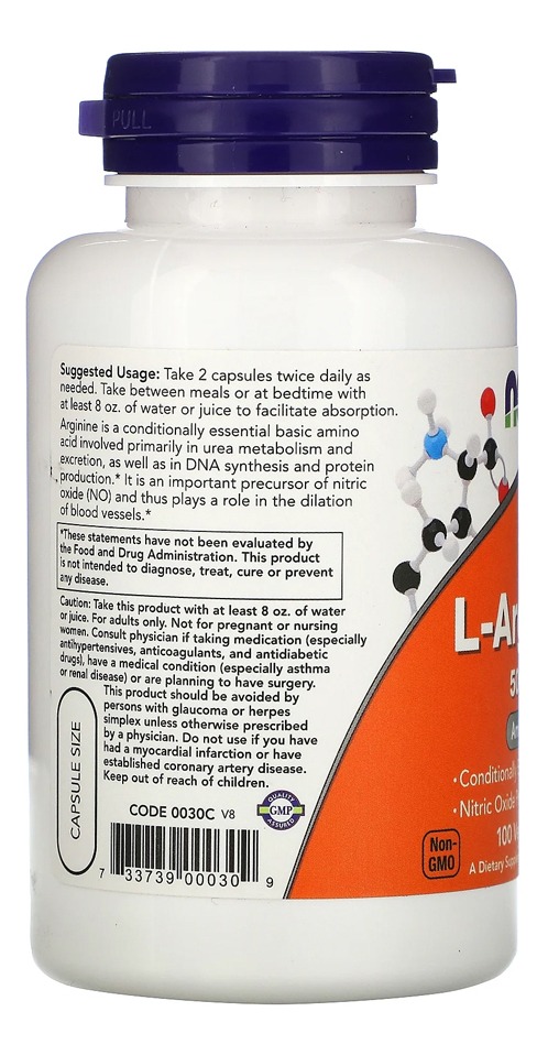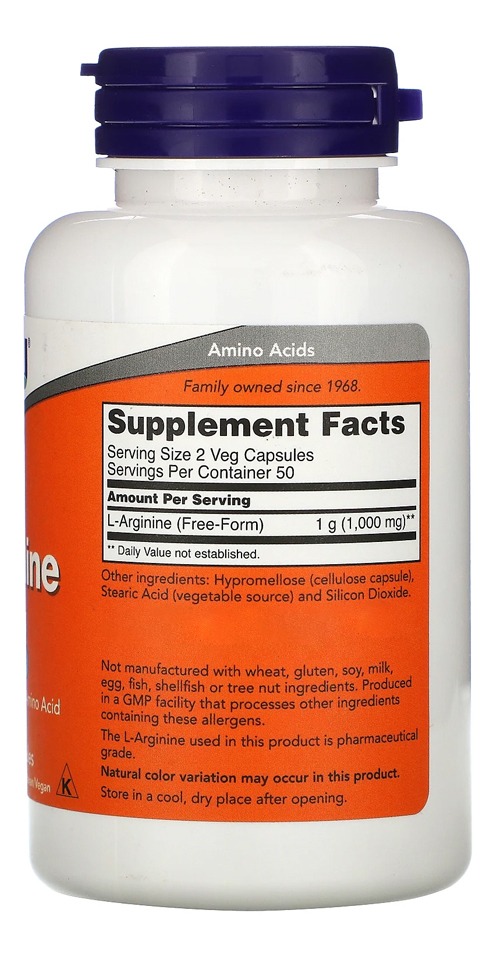 L-Arginina 500mg Now Foods 100 Cápsulas Vegetarianas / No Brasil