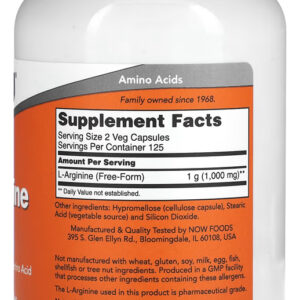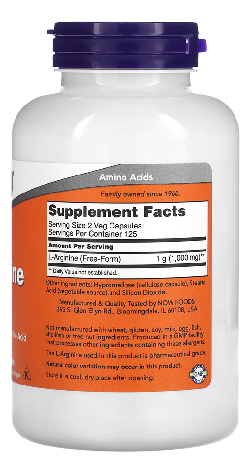 L-Arginina 500mg Now Foods L-Arginine 250 Veg Caps Energia Natural Performance Ativa – Importado