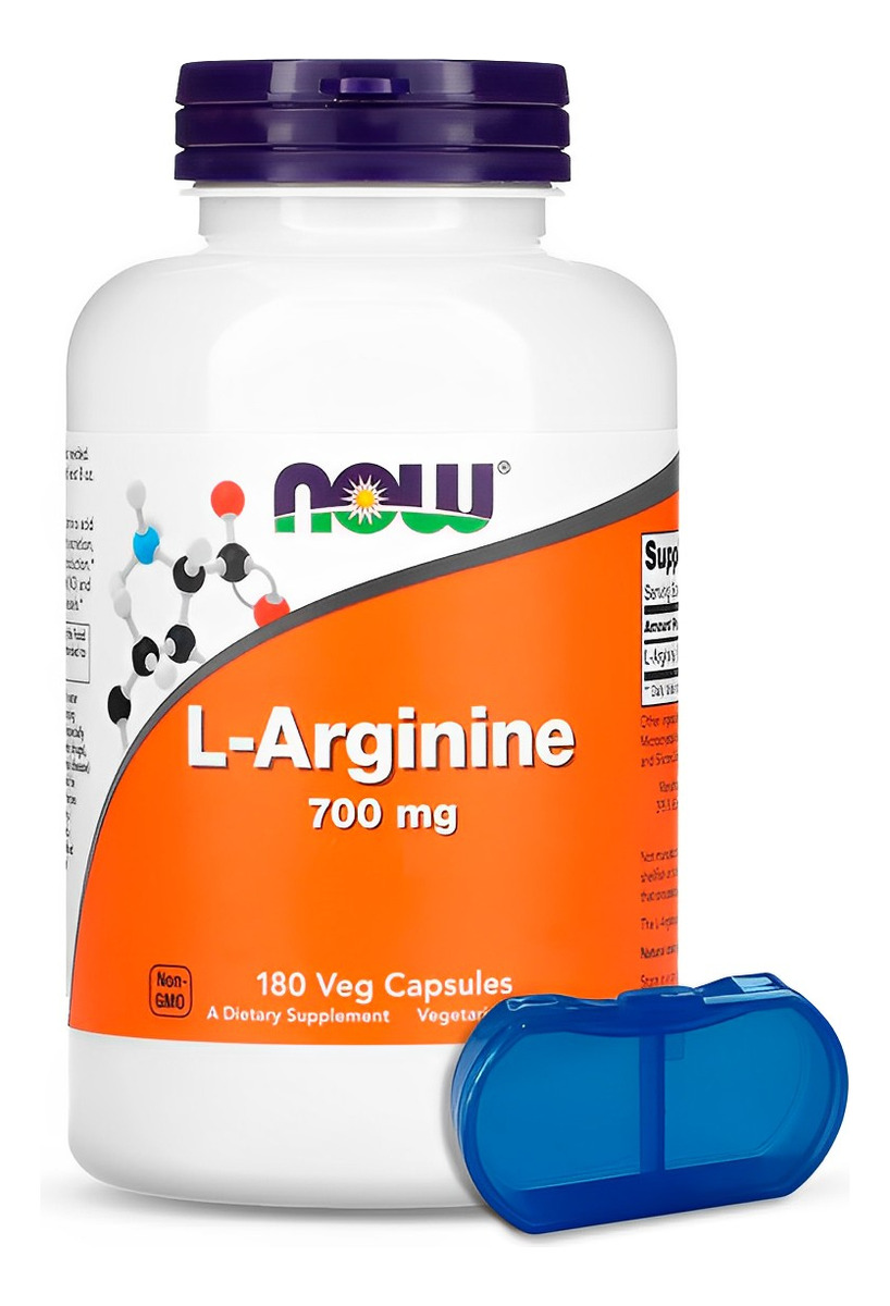 L-arginina 700mg Now Foods 180 Cáps + Porta Cápsulas