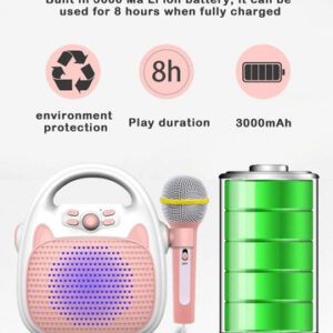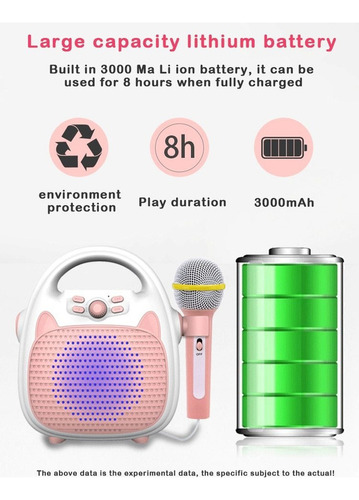 Longa duração da bateria: a máquina de cantar tem uma bateria embutida de alta capacidade de 8000mAh, que pode ser usada continuamente por 8 horas e é durável e prática.