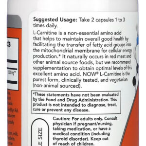 4. Fácil Integração na Rotina Diária: A L-Carnitina 250mg da Now Foods pode ser facilmente adicionada à sua rotina diária. Cada cápsula contém a dosagem ideal, simplificando o processo de consumo sem a necessidade de medições ou preparações complicadas.