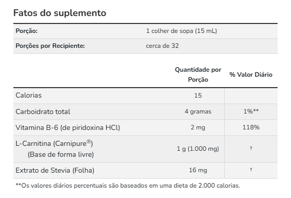 Formulado com L-Carnitina, este produto conta ainda com ingredientes adicionais para proporcionar funcionalidade e praticidade. Sua composição foi elaborada para atender às demandas diárias de forma simples e eficaz. Validade longa