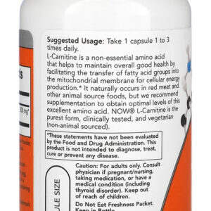 O suplemento de L Carnitina da NOW Foods é fabricado de acordo com os mais altos padrões de qualidade, garantindo que você receba um produto seguro e eficaz. Cada cápsula fornece 500mg de L Carnitina;