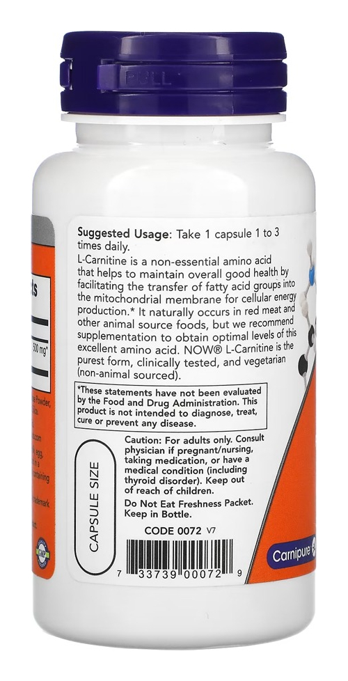 A L Carnitina 500 mg da NOW Foods é um suplemento alimentar de alta qualidade, formulado para dar suporte ao metabolismo energético, sendo que é essencial para transportar gorduras de longa cadeia para a mitocôndria, onde são convertidas em energia;