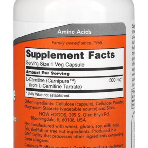 L Carnitina 500mg Now Foods 60 Cápsulas Veganas Ideal para Atletas e Indivíduos Ativos – No Brasil