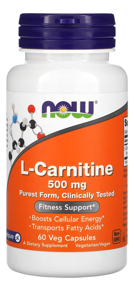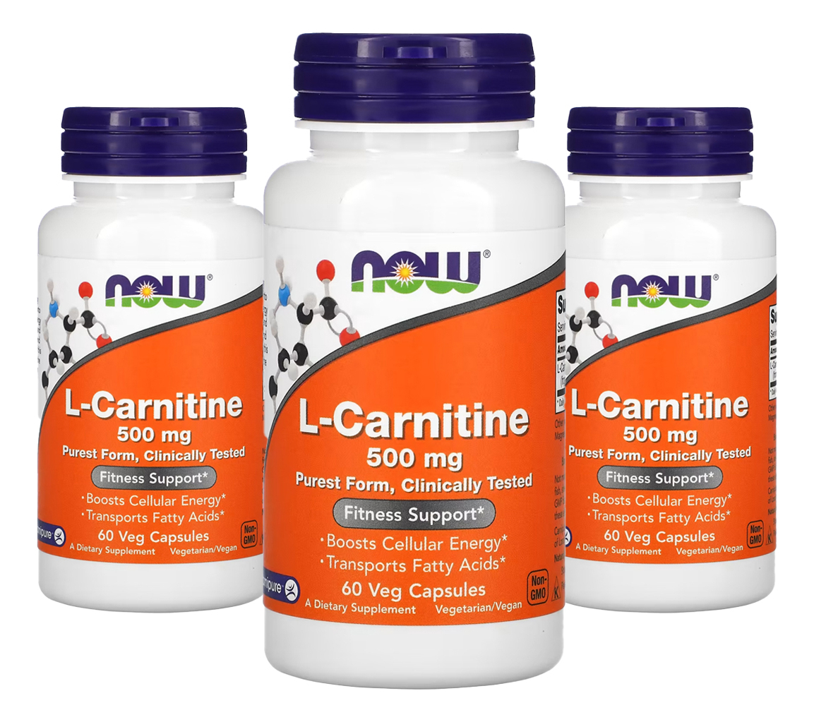 'L Carnitina 500mg Now Foods 60 Cápsulas Veganas Ideal para Atletas e Indivíduos Ativos