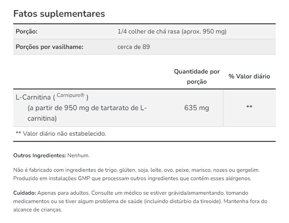Kit L-Carnitina Pura em Pó 85g Now Foods + Porta Cápsulas Suporte Eficiente: A L-Carnitina da Now Foods oferece um suporte incrível para quem busca um estilo de vida ativo. Conhecida por suas propriedades únicas, a L-Carnitina é um suplemento chave para quem procura otimizar suas rotinas de bem-estar. Apresentação em Pó: Sua forma em pó puro torna este produto um destaque no mercado. Esta apresentação facilita a incorporação do suplemento em diferentes bebidas e alimentos, permitindo uma personalização completa de uso. Qualidade Internacional e Pronta Entrega: Importado, este produto da Now Foods garante padrões internacionais de qualidade. Além disso, a pronta entrega disponível assegura que você possa começar a incorporá-lo em sua rotina sem demora. Porta Cápsulas com Duas Repartições: O kit também inclui um porta-cápsulas prático, dividido em duas seções internas. Isso permite uma organização eficaz e separada de diferentes tipos de cápsulas ou pílulas. Composição Pura e Confiável: Este suplemento contém L-Carnitina pura, sem aditivos desnecessários. A qualidade da Now Foods assegura que você está obtendo um produto puro e eficaz. VALIDADE LONGA