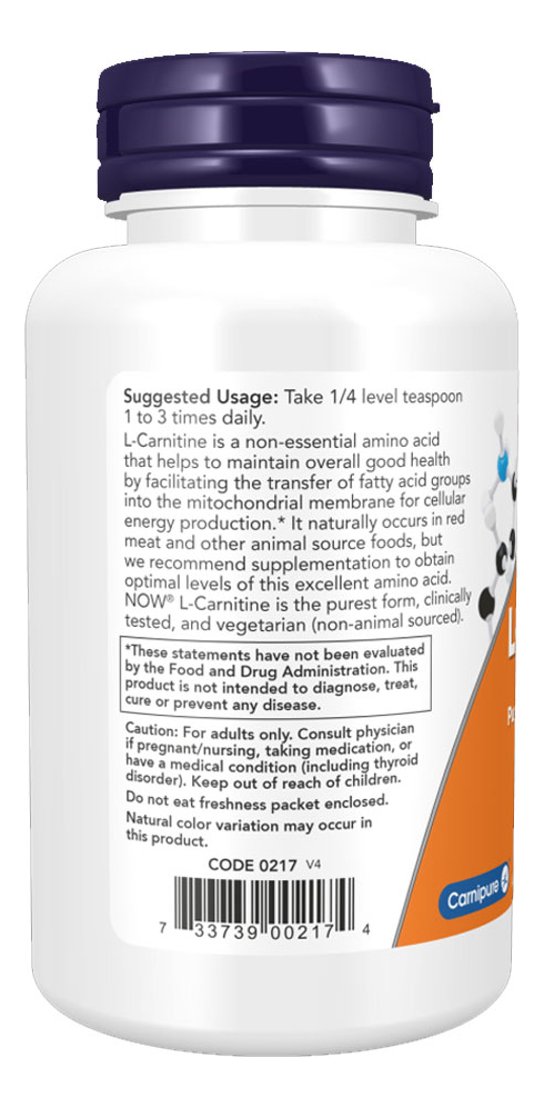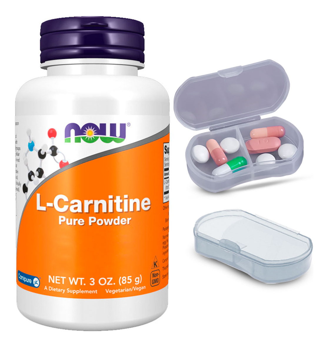 L-carnitina Pura Em Pó 85g Now Foods + Porta Cápsulas