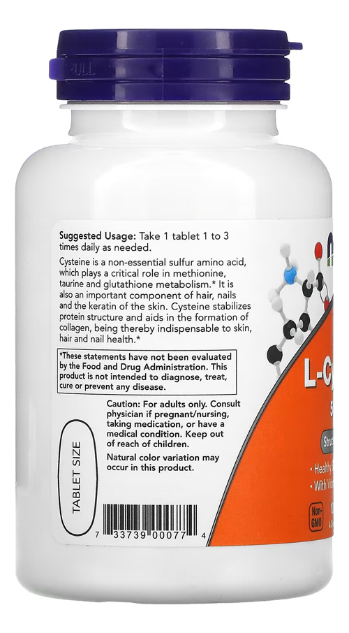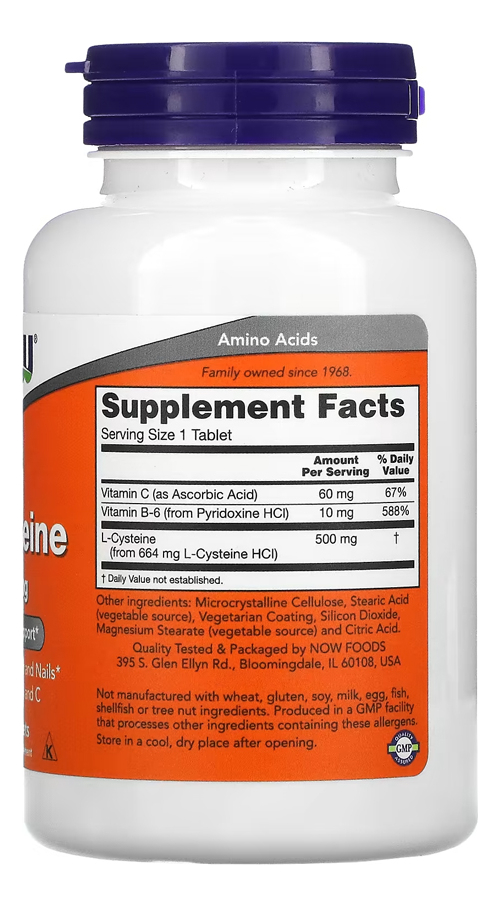L-cisteína 500mg Now Foods L-Cysteine 100 Tablets – Importado