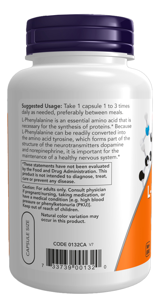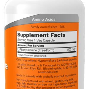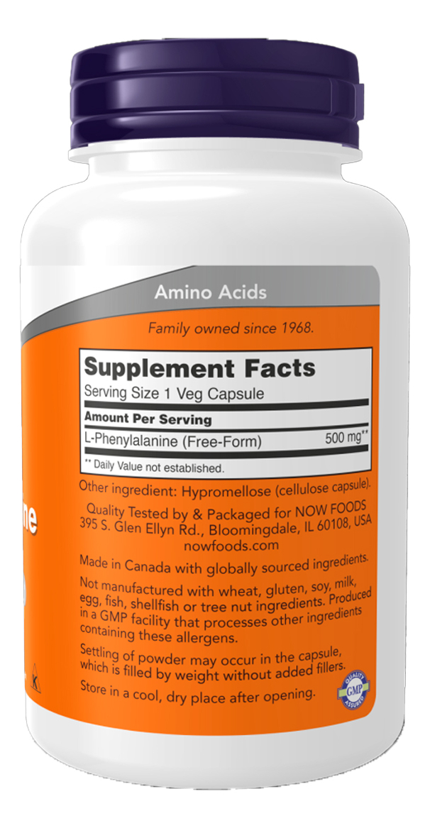 L-fenilalanina 500mg Now Foods 120 Cápsulas Importado