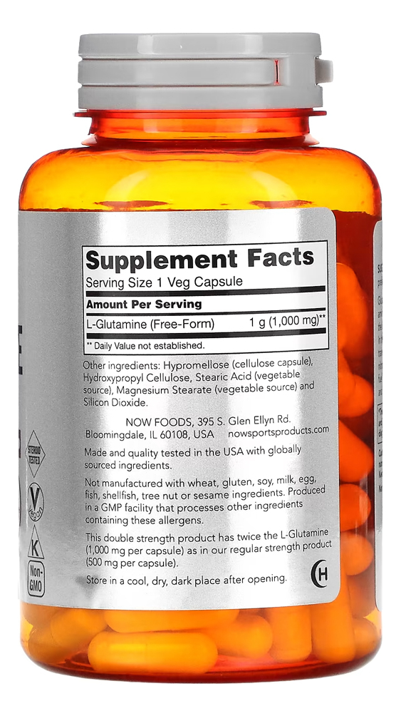 L-Glutamina 1000mg Now Foods Sports 120 Caps Produto Importado