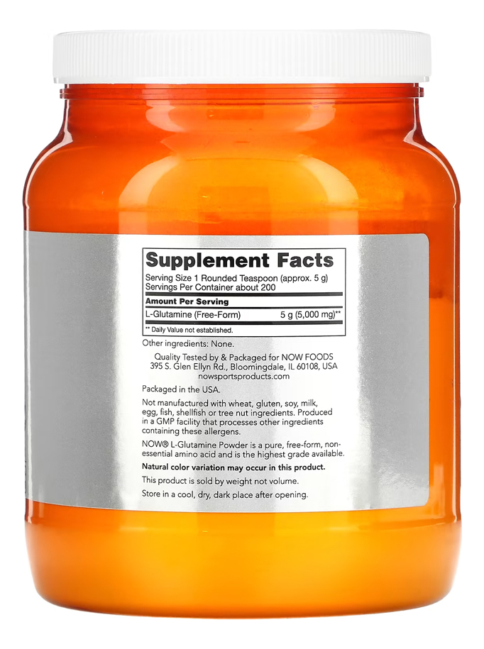L-glutamina Em Pó Now Foods Sports 1kg Pó Puro Importado