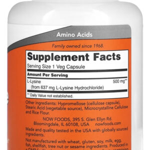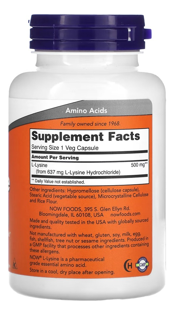 L-lisina 500mg L-lysine 100 Veg Caps Importado 4un Now Foods