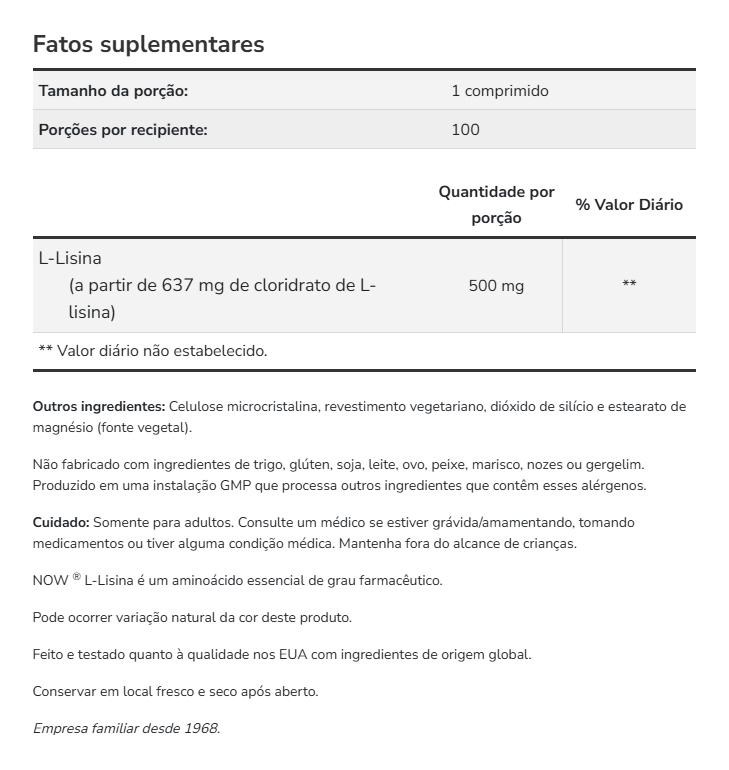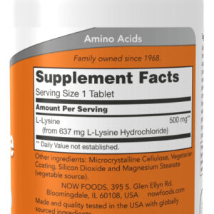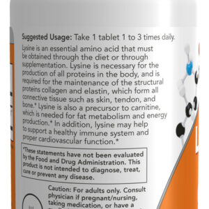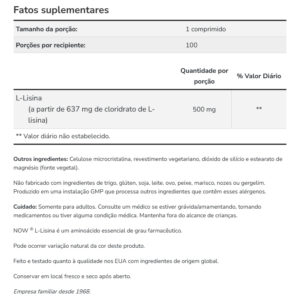 L-lisina L-lysine 500 Mg 100 Comprimidos – Now Foods