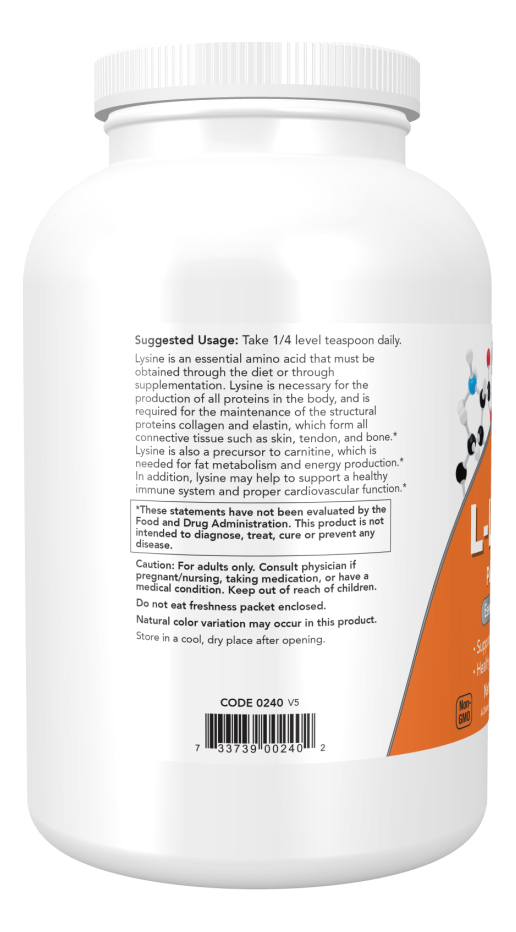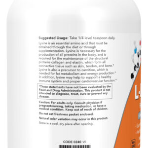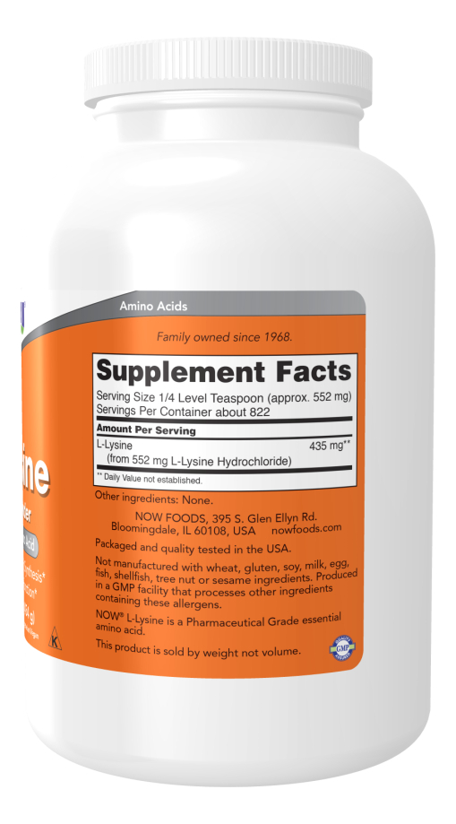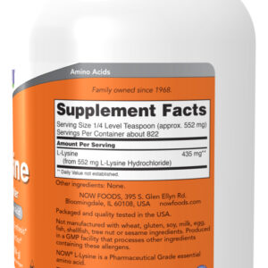 • L-lisina em pó de fácil dissolução e absorção, embalagem de 1 lb.