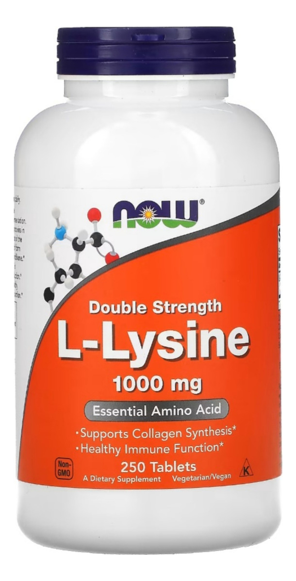L-lysine Now Foods 1000mg L-lisina 250 Tabs Sabor Sem Sabor