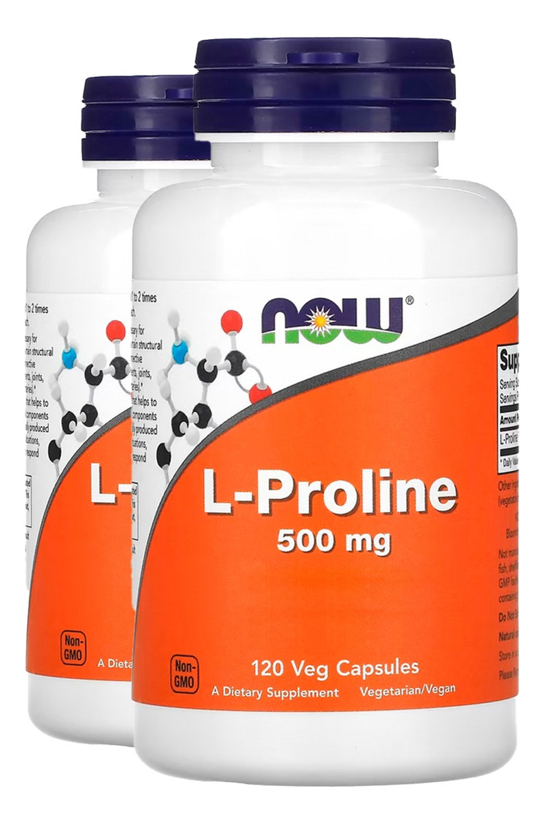 L-Prolina 500mg Now Foods 120 Veg Caps Produto Importado