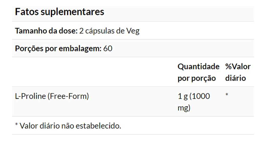 4. Fácil Integração na Rotina Diária: As cápsulas de L-Prolina são desenvolvidas para se integrar facilmente à rotina diária, sem a necessidade de ajustes complexos ou preparações especiais.