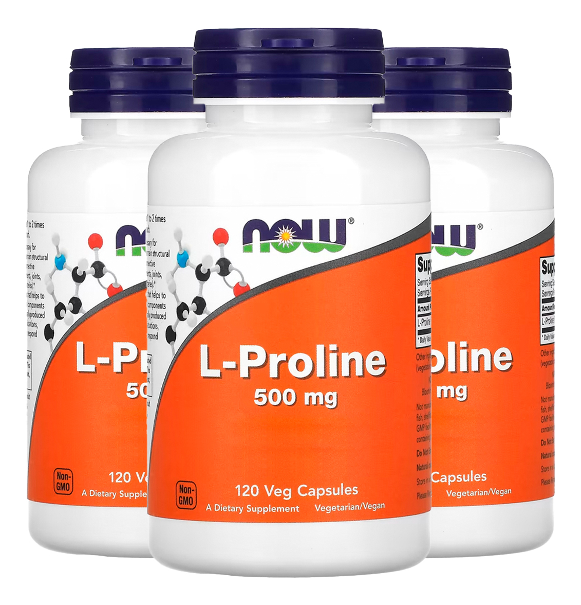 L-prolina 500mg Now Foods 120 Veg Caps Importado 3un