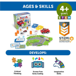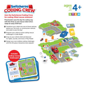 Este robô de codificação três em um está pronto para missões de resgate cheias de programação! Crianças em idade pré-escolar salvam o dia do jeito de programar quando exploram a diversão STEM desde cedo com a equipe de programação da Switcheroo da Learning Resources. Veja como cada missão com este brinquedo de codificação para crianças se desenrola: as crianças desenham um cartão de desafio de resgate de codificação, transformam seu robô de codificação em um dos três veículos (carro da polícia, caminhão de bombeiros ou veículo de construção) e programam para salvar o dia! Ao longo do caminho, eles aprenderão novas habilidades, desde STEM e codificação 100% livres de tela até pensamento crítico, lógica e muito mais! Quando não estão salvando o dia no Modo de Código, as crianças também podem colocar uma nova carcaça de veículo em seu robô de codificação e descobrir a luz, os sons e os truques do Modo Jogo. Cada projétil de veículo vem com seus próprios segredos interessantes! O Switcheroo Coding Crew vem com um conjunto de brinquedos interativo de 46 peças, para que as crianças possam acompanhar os desafios ou criar seus próprios desafios de resgate de STEM e codificação!