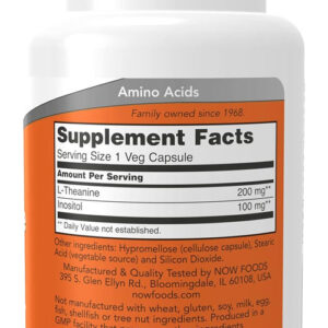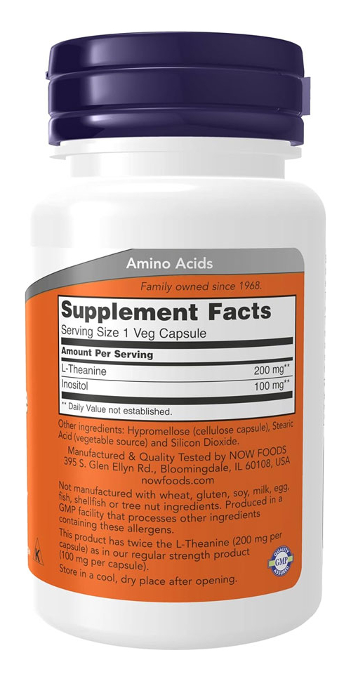 L-teanina 200mg Now Foods L-Theanine 60 Cápsulas Vegetarianas – Importado