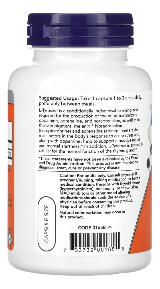 Este produto possui mais L-Tirosina (750 mg por cápsula) do que o produto regular (500 mg por cápsula).