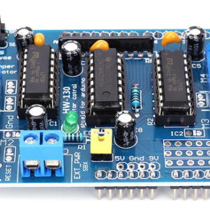 3. Múltiplas opções de controle de motor: Com esta blindagem de controle de motor, você pode controlar até 4 motores DC bidirecionais e 2 motores de passo. Também inclui 4 canais de controle de velocidade PWM com resolução de aproximadamente 0,5 por cento, permitindo ajustar com precisão a velocidade do