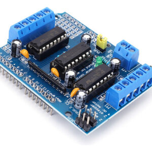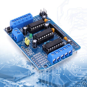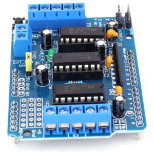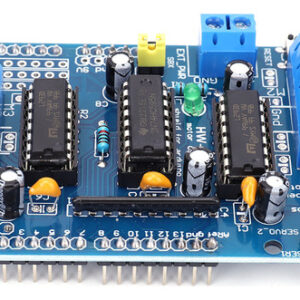 motor. 4. Proteção abrangente do motor: A blindagem incorpora quatro pontes H usando o chip L293D, fornecendo a cada ponte uma corrente de 0,6A (pico de 1,2A). Além disso, é equipado com proteção de desligamento térmico, garantindo operação segura na faixa de tensão de 4,5V a 36V. A inclusão de resistores pull-down garante que os motores permaneçam parados durante a energização.