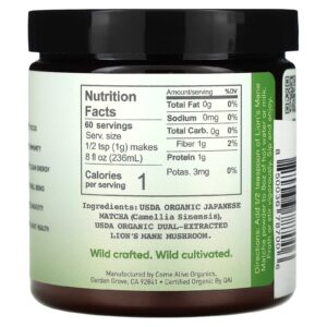 Nosso Matcha Orgânico USDA Organic é colhido à mão no Japão e pó perfeito. Ele é aprimorado com pó de alto extrato de cogumelo Juba-de-leão USDA Organic. Uma única xícara tem muitos benefícios para a saúde quanto 10 xícaras de chá verde coado!
