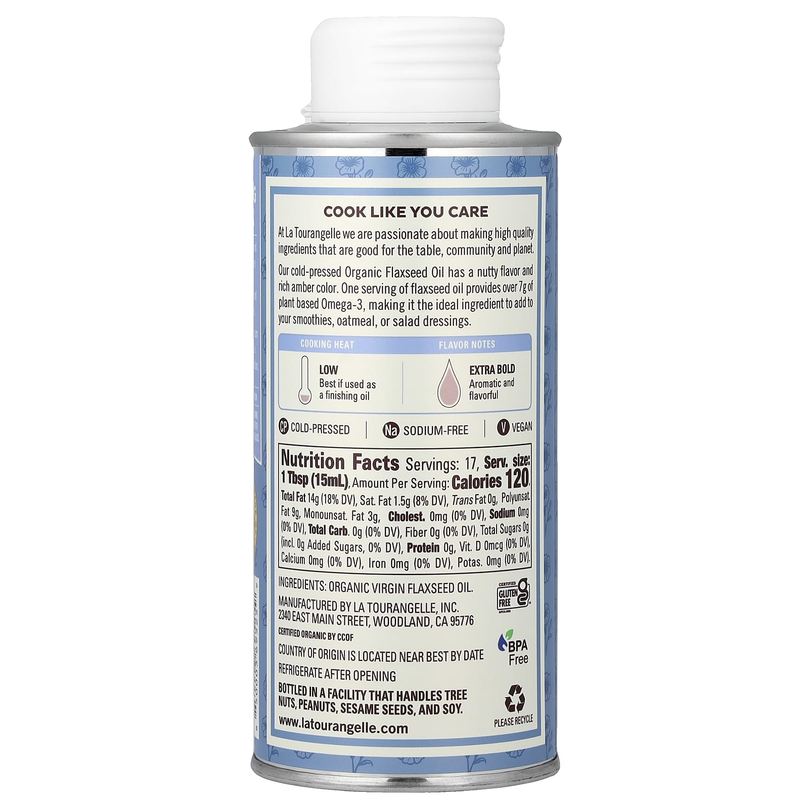 La Tourangelle Óleo de Linhaça Orgânico 250 ml (845 fl oz) – La Tourangelle Alimentos Condimentos, molhos e pastas.