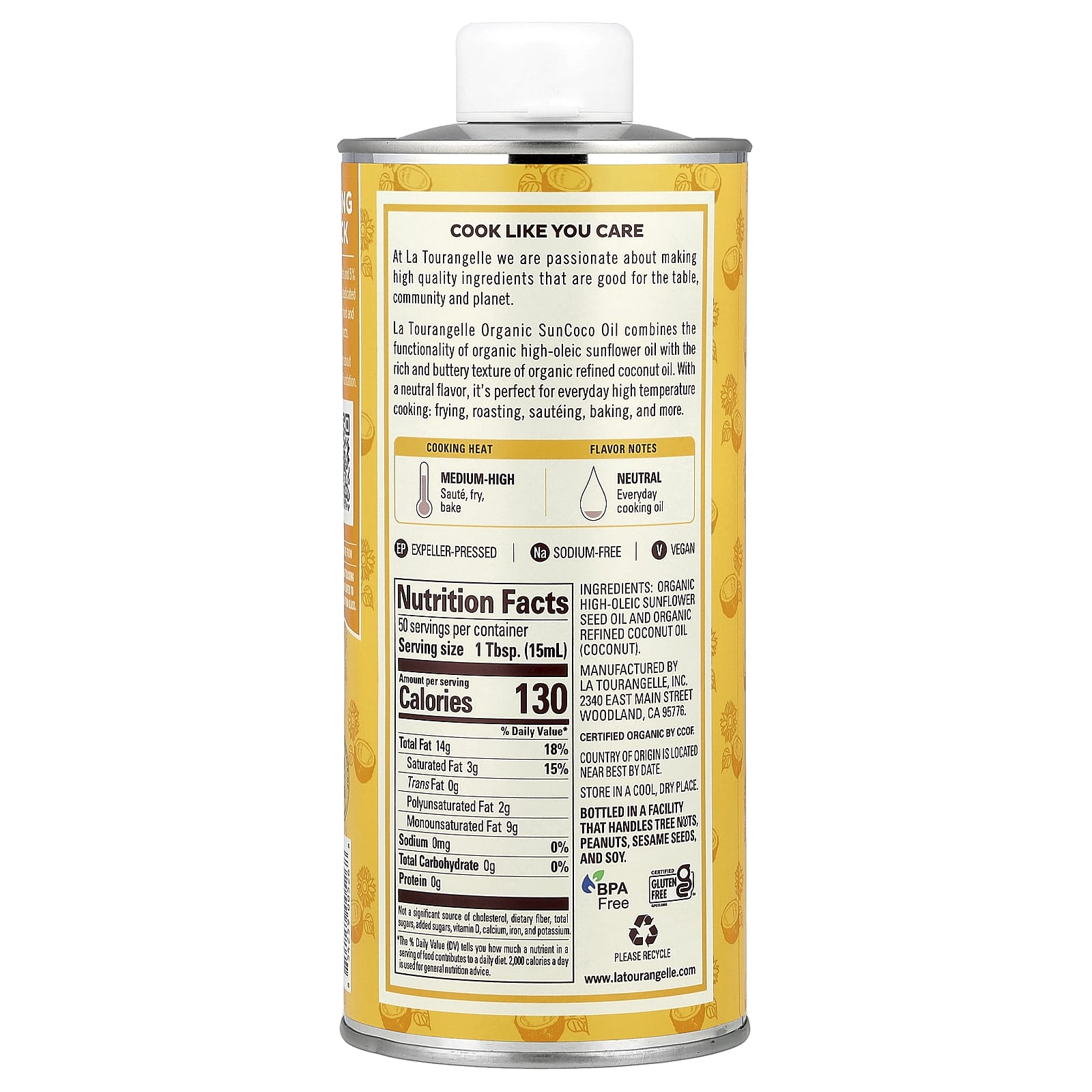 O La Tourangelle Organic SunCoco Oil combina a funcionalidade do óleo de girassol orgânico com alto teor oleico com a textura nutritiva e amanteigada do óleo de coco refinado orgânico. Com um sabor neutro, é perfeito para cozinhar diariamente em altas temperaturas: fritar, assar, refogar, assar e muito mais.
