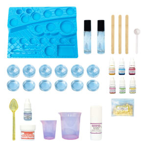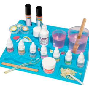 Kit STEM Thames & Kosmos Yummy Rainbow Lip Balm Lab | Faça protetores labiais e brilhos em um arco-íris de cores | Inclui sabores de morango, uva, banana e potes de cosméticos | Química e biologia dos cuidados com a pele – Misture seus próprios protetores labiais e gloss labial em um arco-íris de cores e sabores. – Explore a química dos produtos para os lábios e a biologia da pele e dos lábios. – Três diferentes sabores e aromas incluem morango, banana e uva. – Inclui estação e ferramentas de experimentação de plástico, um manual colorido de 16 páginas para orientar o processo, bem como potes de plástico e frascos aplicadores de bolas de patins para suas criações cosméticas! – Exaustivamente testado de acordo com os mais altos padrões de segurança de cosméticos e brinquedos.