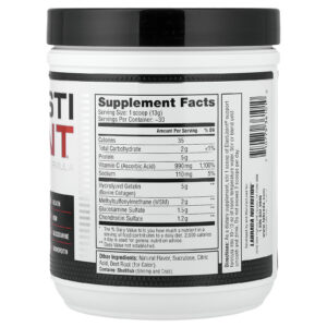 Como suplemento alimentar, misture 1 medida da fórmula de suporte ElastiJoint em 10-12 oz de água em temperatura ambiente. Mexa ou misture até ficar homogêneo e beba. Não exceda 2 medidas por dia.