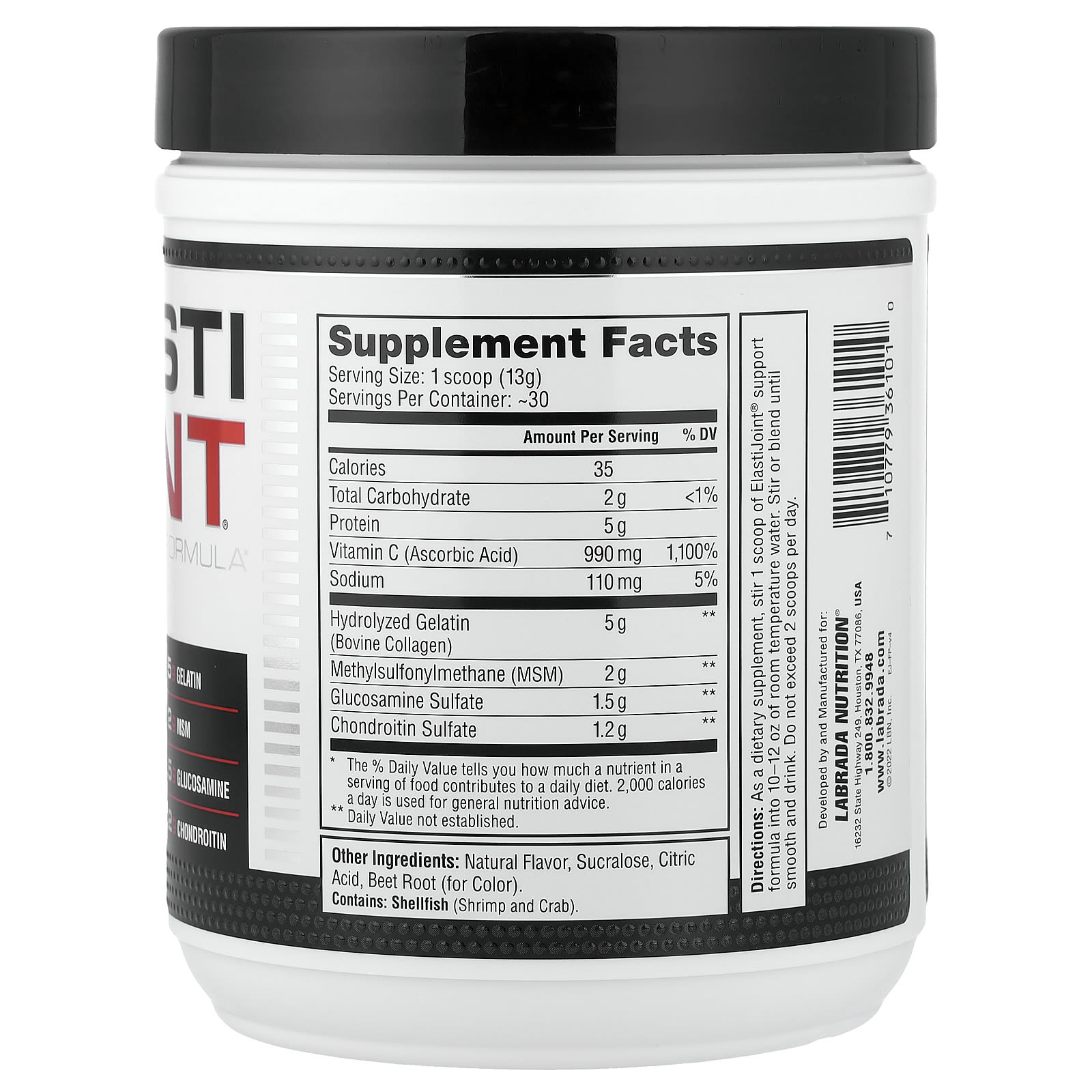 Labrada Nutrition ElastiJoint Fórmula de Suporte para as Articulações Sabor Ponche de Frutas 384 g (1354 oz) – Labrada Nutrition Suplementos Ossos, Articulações e Cartilagem Fórmulas de Glucosamina.