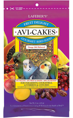 Fruit Delight Avi-Cakes traz diversão saborosa às refeições de seus pássaros. Este alimento nutricionalmente completo para pássaros combina 50% de grânulos nutricionalmente balanceados com grãos e sementes saudáveis, além de pedaços de cranberries, tâmaras, manga, mamão e abacaxi de qualidade humana. Essa sensação gustativa é formada em forma de bolo que os pássaros adoram segurar e separar. É por isso que é chamado de alimento para trabalhar e mastigar, e é mais do que apenas uma nutrição saborosa. Formulado pelos melhores veterinários e nutricionistas aviários. Proteínas e carboidratos essenciais para obter energia; vitaminas essenciais, minerais quelatados e antioxidantes importantes para estimular o sistema imunológico. Ácidos graxos ômega 3 e 6 balanceados para promover a saúde da pele e das penas. Feito com ingredientes não transgênicos de qualidade humana, sem cores, conservantes ou sabores artificiais. Feito em pequenos lotes na fazenda da família Lafeber, na zona rural de Illinois.