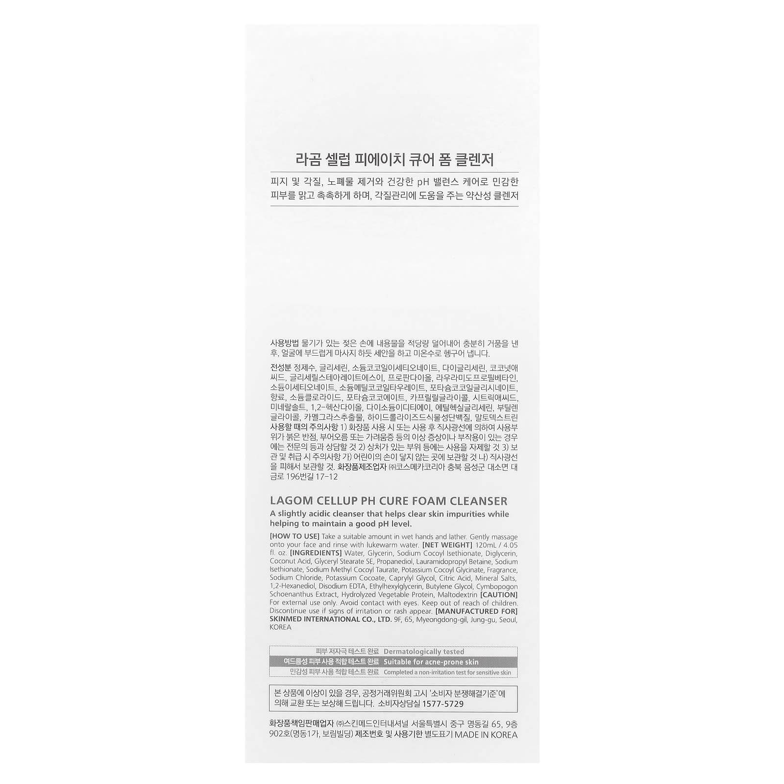 LAGOM Espuma de Limpeza Cellup pH Cure 120 ml (405 fl oz) – LAGOM Beleza Limpeza Facial Sabonetes Faciais Limpeza facial K-Beauty.
