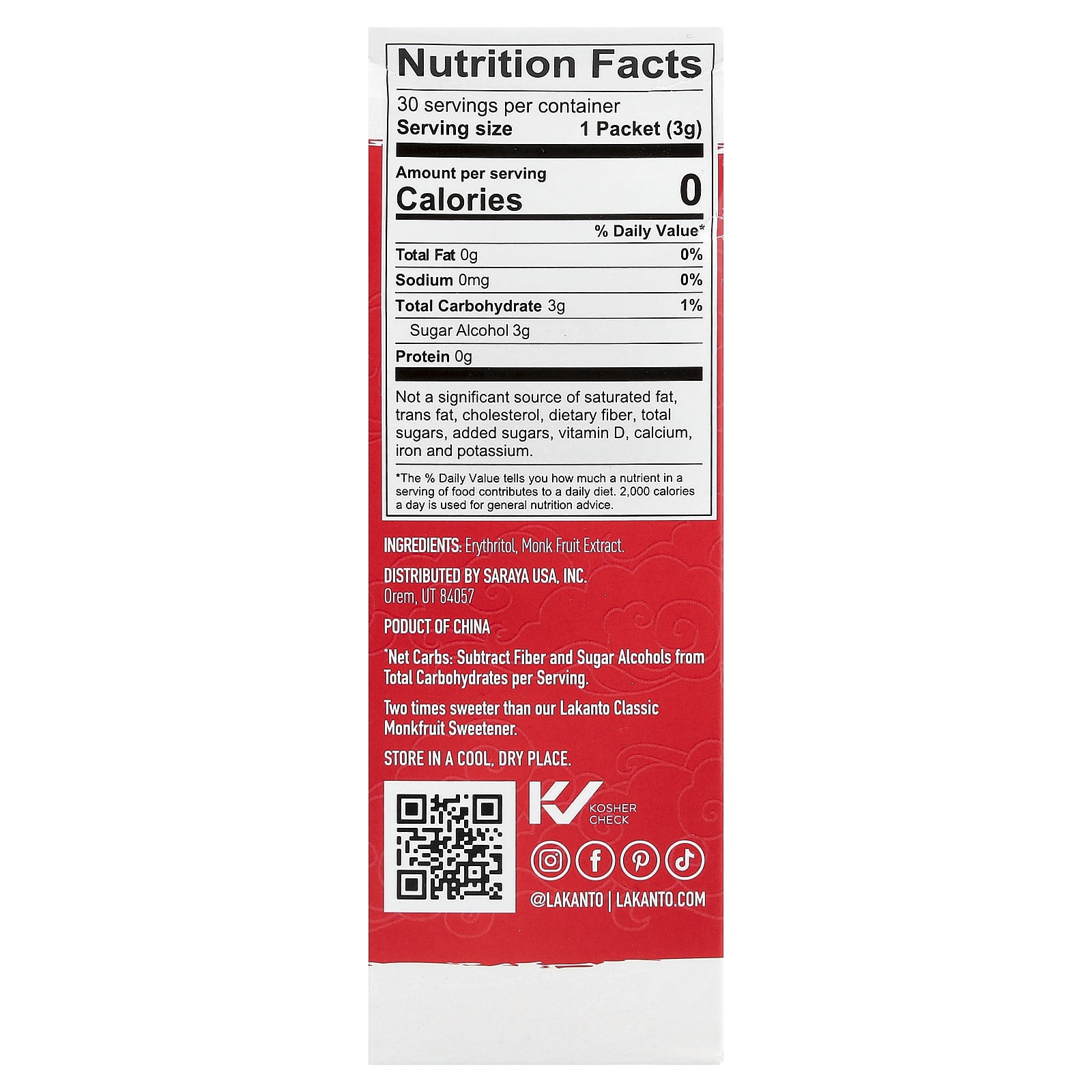 Lakanto Adoçante de Fruta-dos-monges com Eritritol Clássico 30 Pacotes 90 g (317 oz) – Lakanto Alimentos Mel e adoçantes Fruta do Monge.