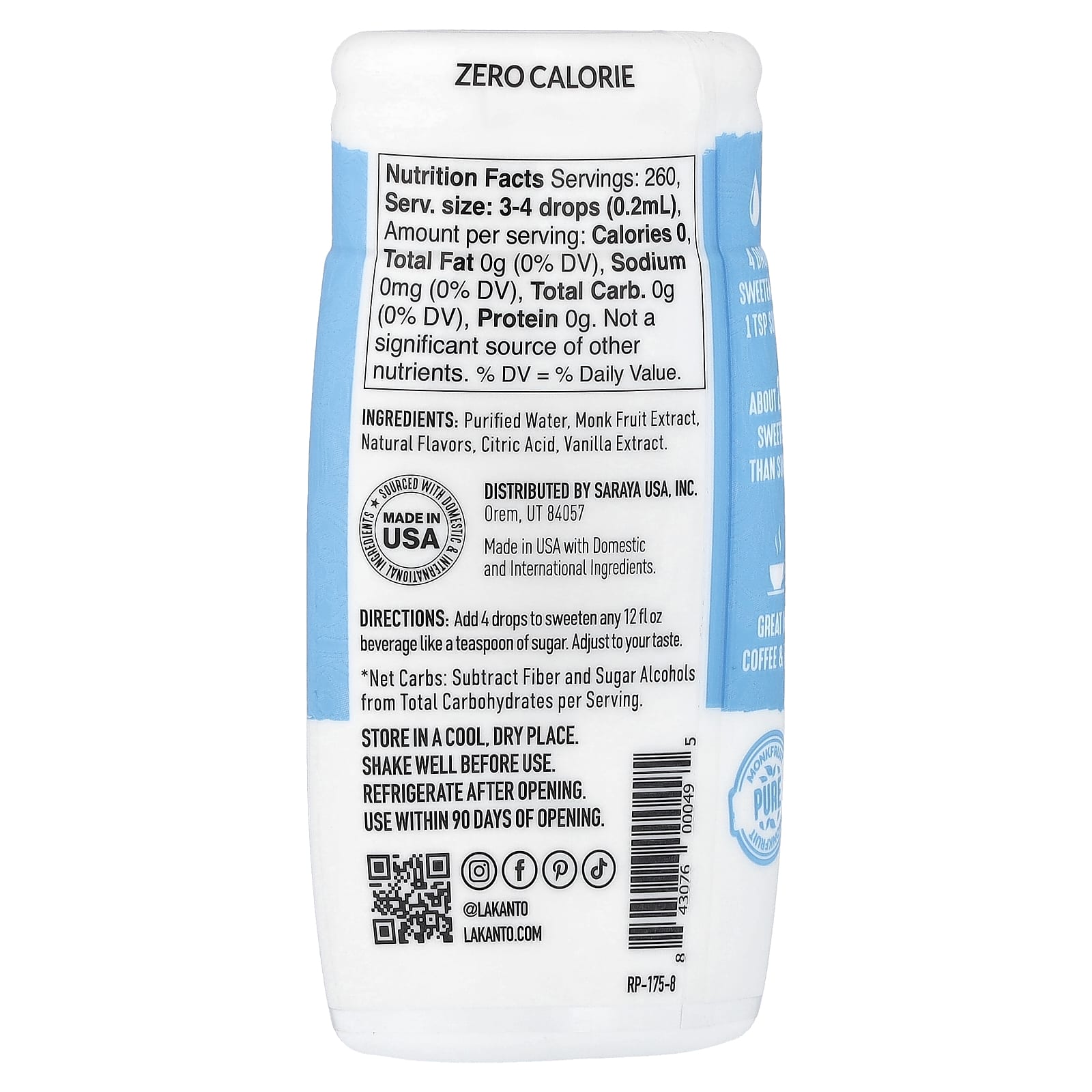 Lakanto Gotas de Adoçante de Fruta-dos-monges Baunilha 52 ml (176 fl oz)